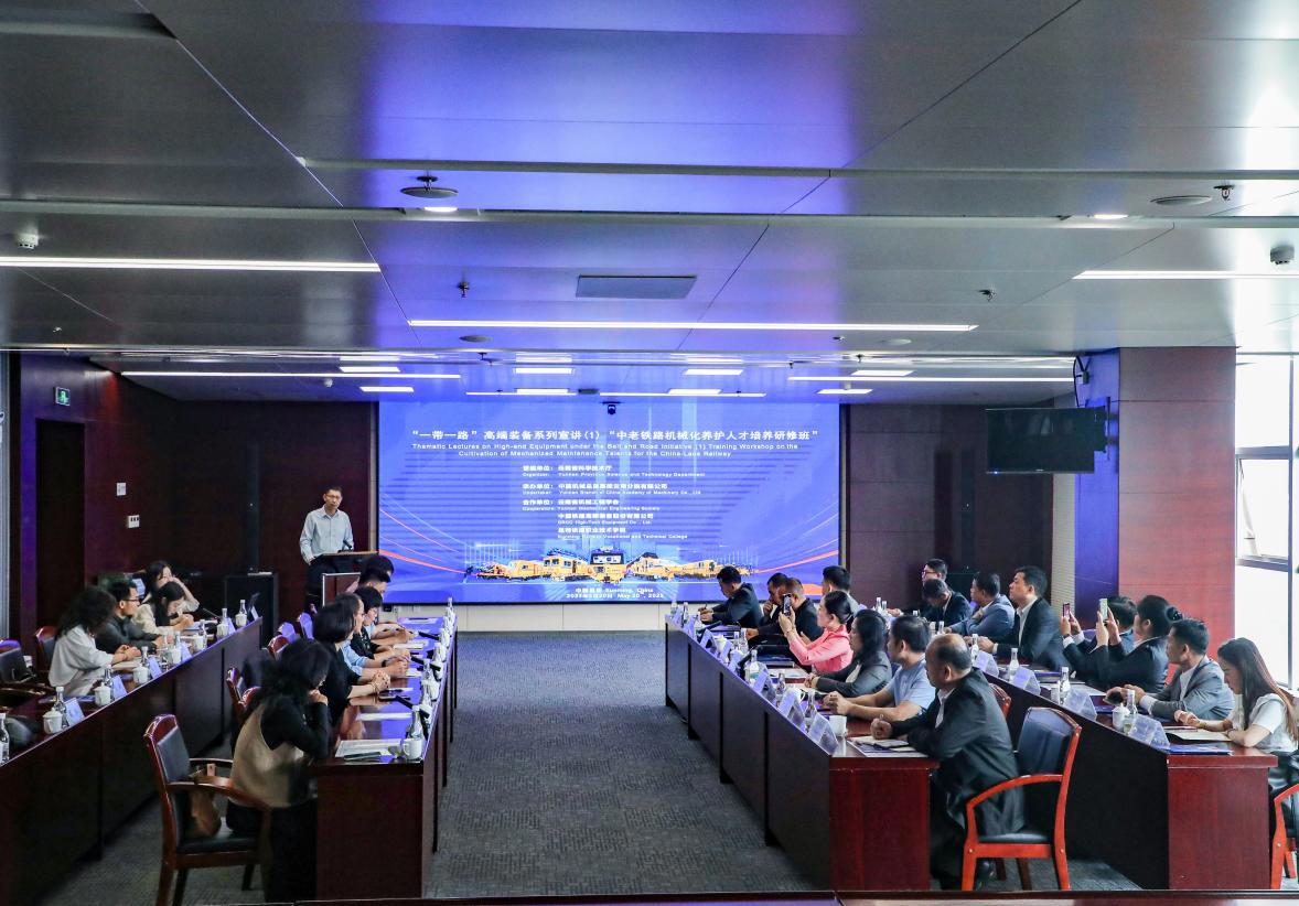 2025年5月20日,"一帶一路"高端裝備系列宣講(1)——中老鐵路機(jī)械化養(yǎng)護(hù)技術(shù)人才研修班在昆明開班。本次研修班由云南省科技廳支持,中國機(jī)械總院云南分院有限公司牽頭承辦,中國鐵建高新裝備股份有限公司、昆明鐵道職業(yè)技術(shù)學(xué)院、云南省機(jī)械工程學(xué)會(huì)聯(lián)合實(shí)施,旨在為老撾培育鐵路養(yǎng)護(hù)技術(shù)骨干,深化中老鐵路技術(shù)合作,服務(wù)"一帶一路"建設(shè)。
